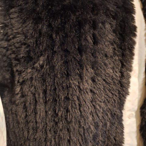 Ubrukt vest i beige/lysebrun fuskepels på sydd bling på sidene.75 cm lengde fra skulder .