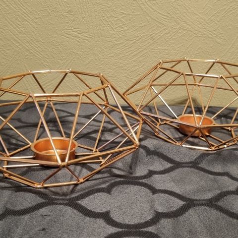 2 stk. finske telys-lysestaker. Disse har et blomsterlignende design med teksturert overflate.