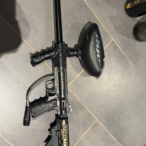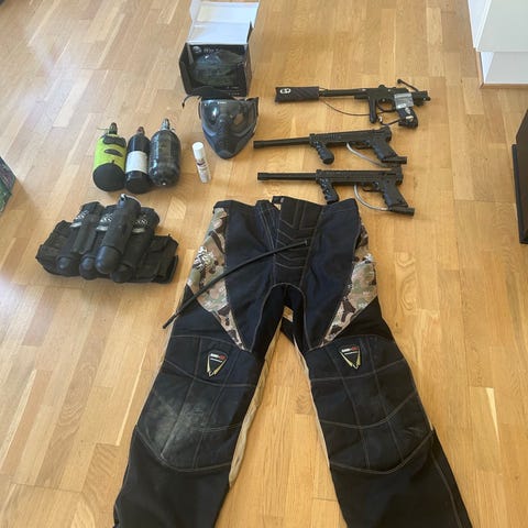 Koffert, 5 magasiner, 5 gass patroner og ekstra utstyrs skinne medfølger.