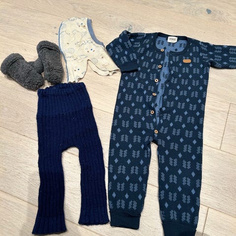 Klespakke til gutt str 74. Det meste er pent og lite brukt. Noe nytt.