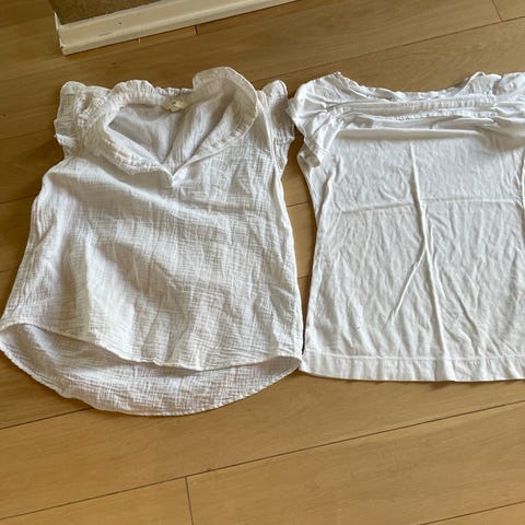 Str xs med vid hals, lang erm, strikk i midje, kort topp.
