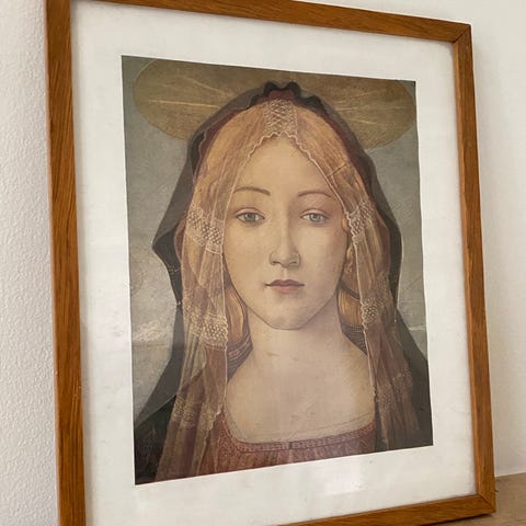 Relieffbilde av kvinne (Maria?) i ramme