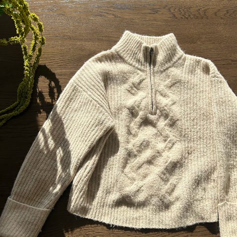 Varm genser med høy hals. Glidelåsen er veldig praktisk for å regulere varmen rundt halsen. Nesten ikke brukt.