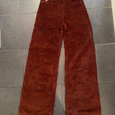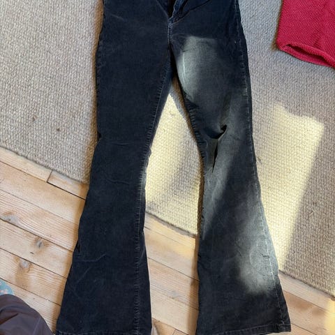 Pent brukte Lois bukser i modellen Melrose side selges. Sorte tynt cordfløylesstoff. Størrelse 25/32.