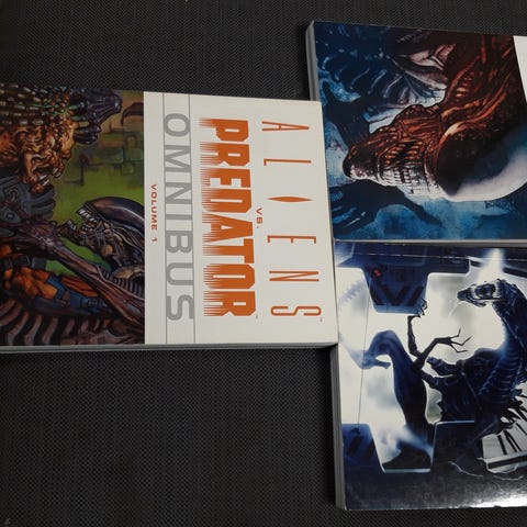 Samlet eller løse. 4 stk aliens . 2 stk aliens predatorer. Samlet 6 stk kr 1000. 1069 med frakt. Har 3 stk aliens omnibus også. Kr 500