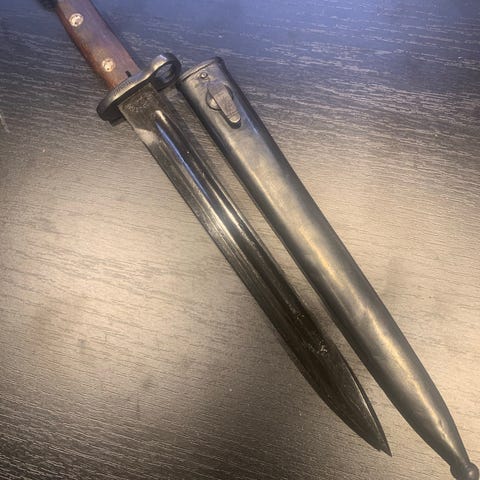 Bajonett med tilhørende slire. Svensk lang type ,