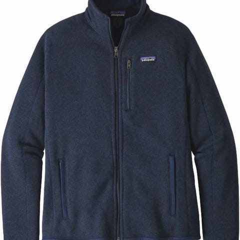 Patagonia fleecejakke i størrelse M for herre, blå farge, laget av fleece materiale. Jakken har hel glidelås og flere lommer, egnet for bruk som mellomlag eller ytterplagg i kalde forhold.