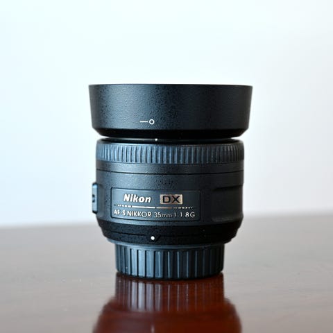 Det følger med et originalt batteri, lader, reim, og blitz.