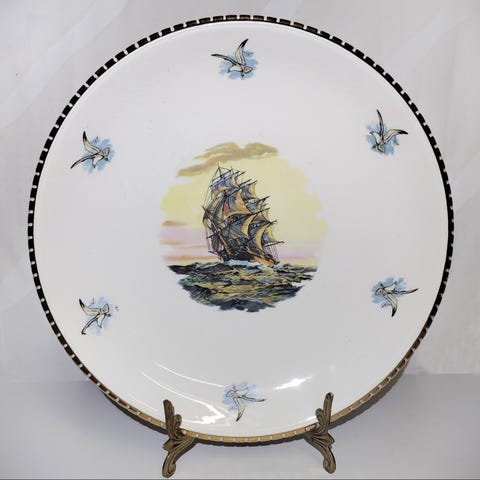 Fin dekor med blomster. Minner om Stavangerflint sin rokokko dekor. Fatet er i pen stand og uten feil. Bittelitt slitasje på gulldekor. Fatet har en diameter på 20,5 cm.