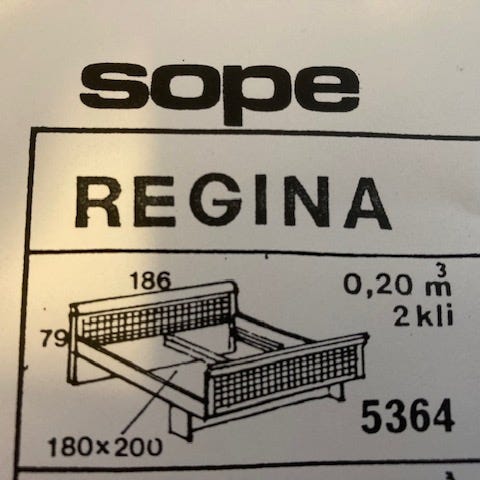 Svane dobbeltseng i hvit farge laget av tre. Sengen har et klassisk design med dekorative detaljer på hode- og fotende. Størrelse på madrassen er 180*210. Vi kjøpte den ny i juli år 2000.