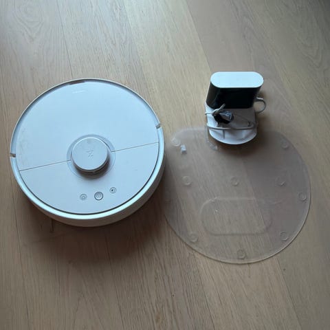 Vi har kjøpt ny robotstøvsuger og selger derfor vår gamle med nytt filter, ny børste og ny mopp. Den støvsuger og vasker helt fint, men man merker at den er seks år gammel. Har hatt docking-problemer.