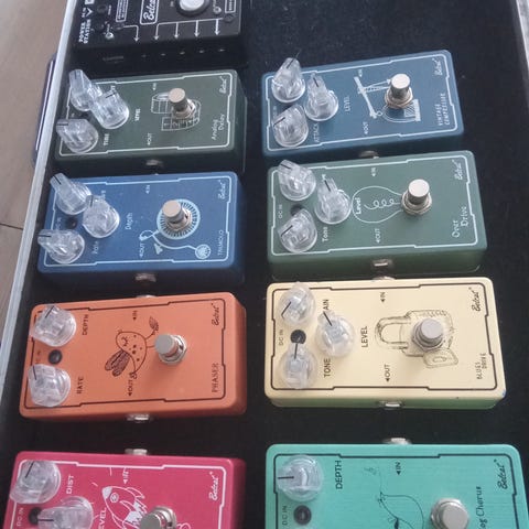 7 amper, 7 kabinetter og 17 effekter, inkludert looper