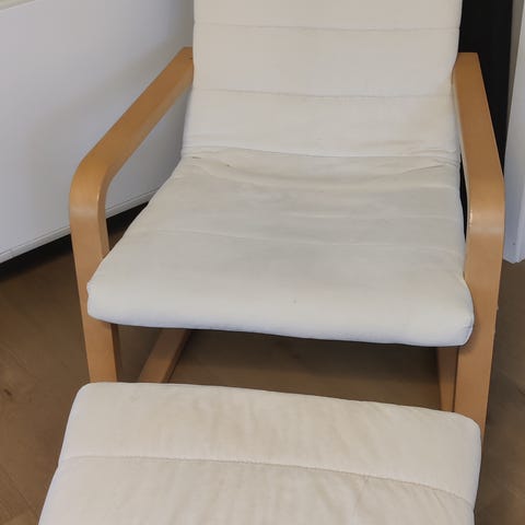 IKEA Lenestol med fotskammel i lyst tre og kremfarget trekk