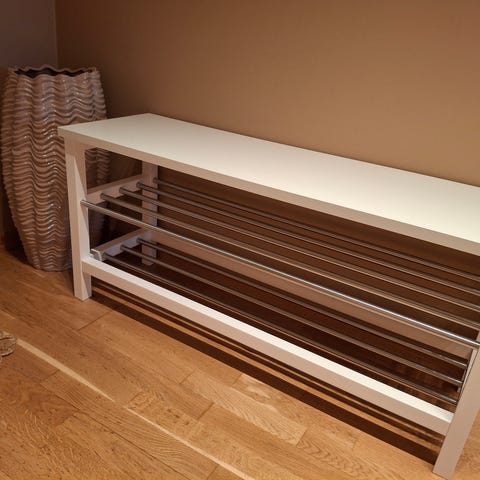 2 stk IKEA Tjusig skohyllersom kan stables oppå hverandre som på bildet. Se detaljer på skjermbilder fra IKEA.