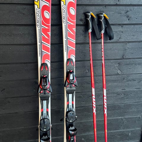 Atomic Xenon X SC carving ski 163cm, Bindinger Tyrion’s SX10, Swix(Aksel Lund Svindal) staver 119 cm, Head Dream støvler passer til str. 37-38, Atomic hjelm med brillerem og Bolle slalombriller.