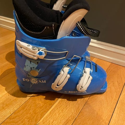 Rossignol Shreditor 75 alpinski med lengde 139 cm, bredde 100/75/96 mm, og dalbind. Skistøvlene er av merket Tecnica, størrelse 281 mm, hvite med røde og blå detaljer. Alpinskiutstyr egnet for barn. Jenter