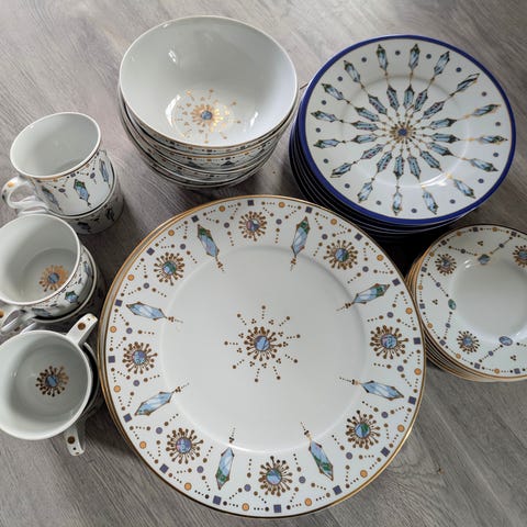 Her har du alt du trenger til både middag, dessert og kaffe. Passer perfekt til hagefesten, på hytta, eller for å dekke et lyst og trivelig bord til hverdags.