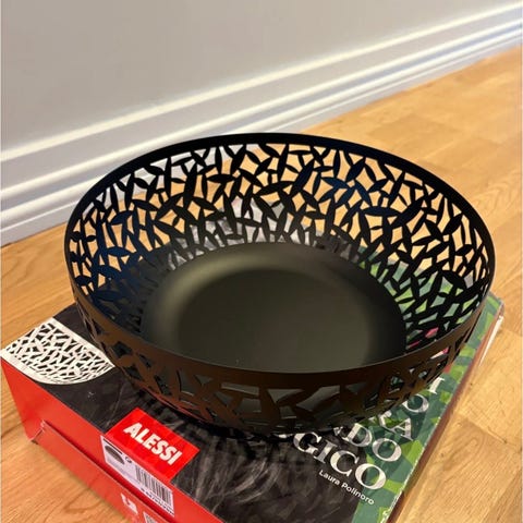 Perfekt som fruktskål, snacksfat eller dekorativt statement på bordet. Laget i lakkert stål, enkel å rengjøre og et flott samleobjekt for Alessi-entusiaster.
