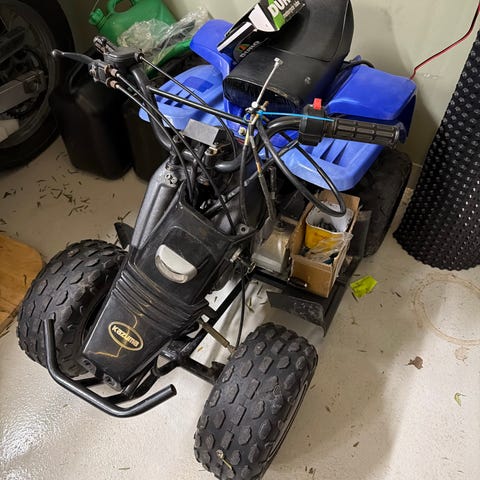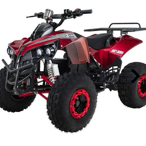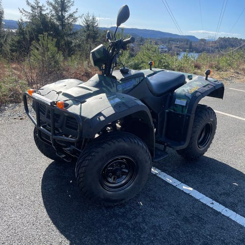 NB! Denne er fiks ferdig sammensatt, men ikke kjørt. Fra leverandør kommer denne nærmest som et byggesett. Du må sette på dekkene, de røde pyntelistene på dekkene, firehjulingen må løftes opp foran og bak for å skru på støtdemperne og støtfanger foran må skrus på. Det er noen timers jobb.