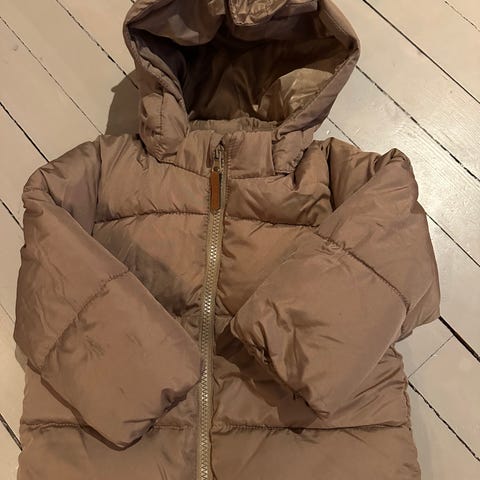 Selger en brun jakke fra hm i str 80 . Søt med bamse motiv og ører på hetta .