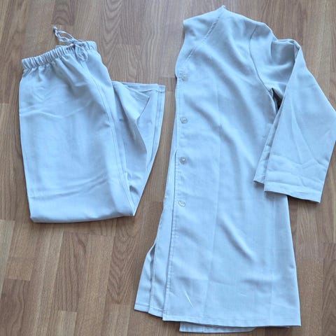 Jeg skulle sy det på en passende jakke, men kom aldri igang. Sjal i saueull og "ermer" med strikk. Disse kan sys på eller bare sette på ulike kåper.
