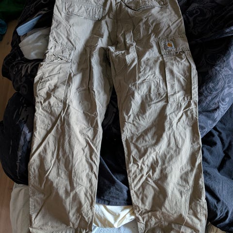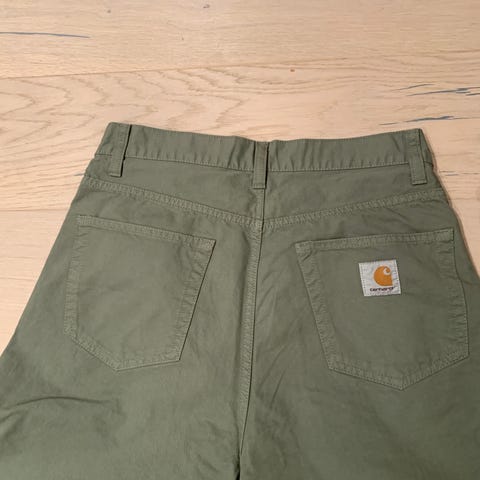 Carhartt chinos i størrelse 32. Har målt 42cm i midje og 105 i lengde. Stor i størrelsen for en 32.