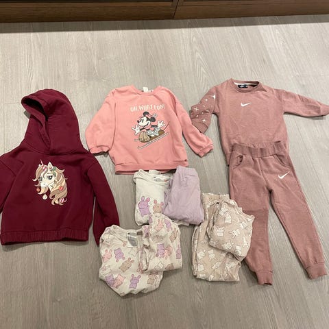 Vi selger en liten pakke med flere gensere/fleece/tshirts for en jente på 2-4år. De er i god stand uten flekker som jeg kunne legge merke til.