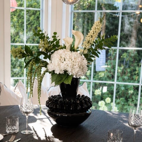 Ø28 H58 cm. Tåler ikke vann. Bruk en innervase hvis blomstene dine trenger vann