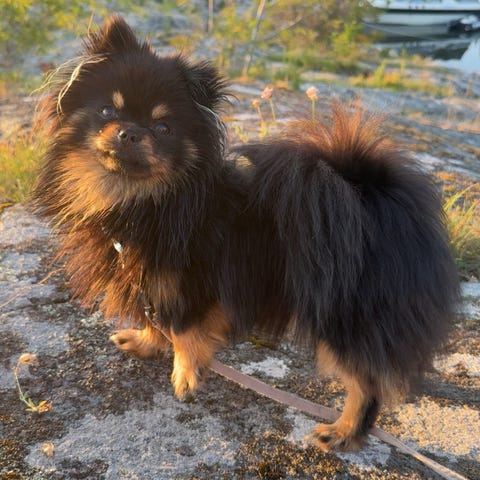 Alva er en 15 uker gammel tispe av rasen japansk spiss/papillon, og veier ca. 3 kg. Hun er rolig, leken og veldig kosete – litt dramatisk på sin sjarmerende måte 😊 Hun elsker mennesker og vil gjerne hilse på alle hun møter.