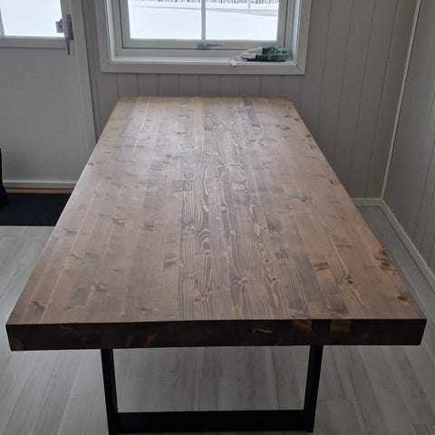 Solid og pent spisebord vurderes solgt da vi trenger et som er enda større. For det meste brukt med voksduk på.