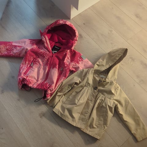 Reima barn jakke i størrelse 104, farge rosa, laget av polyester. Jakken er designet for barn. Den har hette og flere lommer, samt refleksdetaljer for økt synlighet.