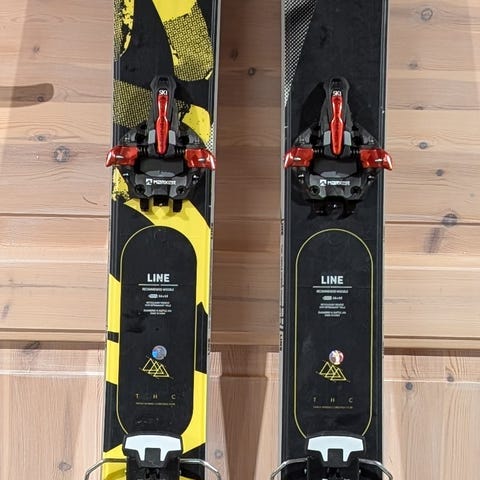 Line Vision 98 mm midtbredde selges. Det har stått på et par Marker Alpinist bindinger, og har vært brukt til toppturer. Selges uten bindinger.
