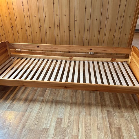 Hvit seng brukt av barn/ ungdom i 10 år. Madrassen er myk og har noen merker, men er ren. Dyrefritt hjem.