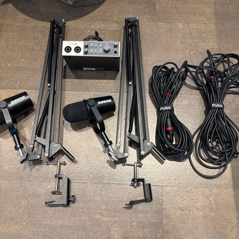 Selger komplett og profesjonelt podcast- og studiooppsett i svært god stand. Lite brukt (ca. 15 episoder totalt). Alt fungerer som det skal. Kvitteringer følger med og gis på forespørsel.
