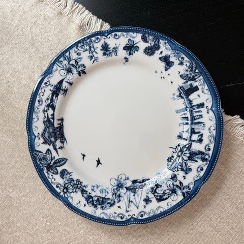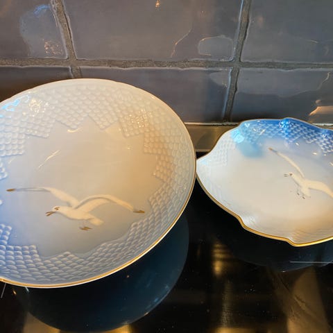 2 middagstallerkner Antarktis + serveringsfat og lys