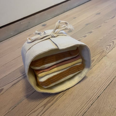 Snuseleke hvor du gjemmer godbiter i fleece oppi skålen. Leken er kun 18 cm i diameter så passer best for små hunder. Selges for 100 kr.