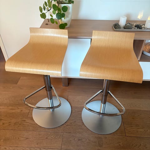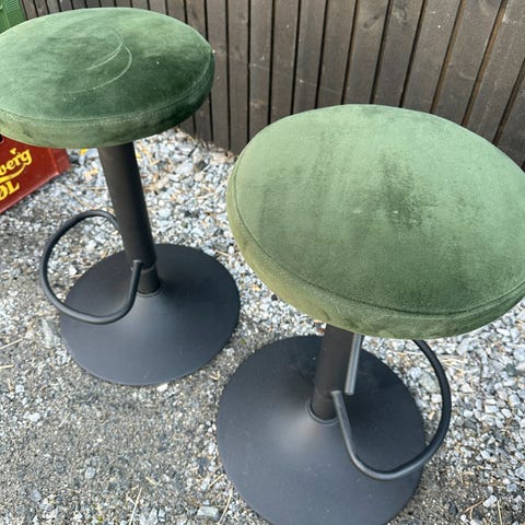 Fine barstoler i matt svart som passer både til kjøkkenøy og barbord. Justerbare seter slik at en kan tilpasse til ønskelig høyde. God sittekomfort. Fungerer helt ypperlig! Selges samlet.