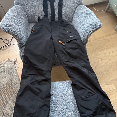 Haglöfs Junior skibukse i svart farge, størrelse 152. Buksen er utstyrt med seler og laget for barn.