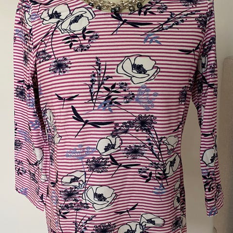 Topp med sort bakside og pen front. Baksiden er viskose. Usikker på forsiden. Tror det er silke, men usikker. Lappen er klippet av.