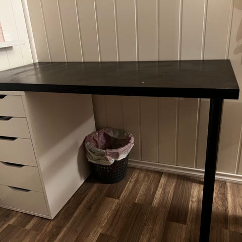 Godt brukt skrivebord, med riper og flekker, selges billig da det ikke brukes lenger.