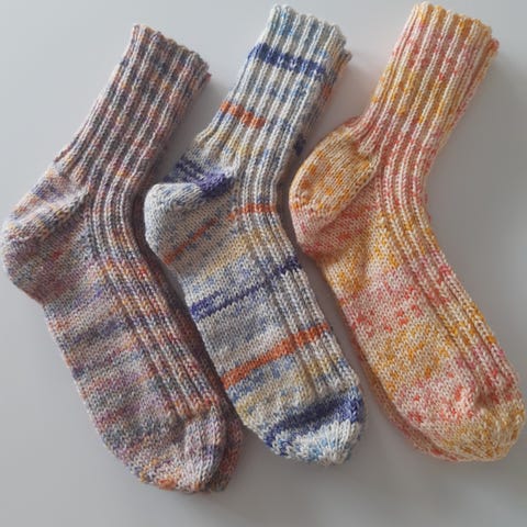 3-pack med nye hjemmestrikka ullsokker i str 36/38.