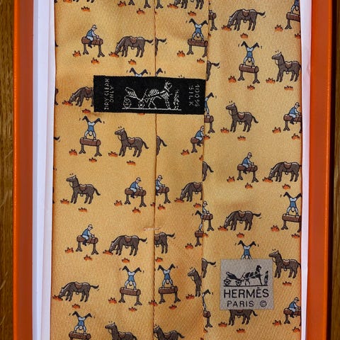 Oransje Hermès slips med skruer og muttere - som nytt. Eske, snøre, konvolutt og pose kan følge med mot tillegg.
