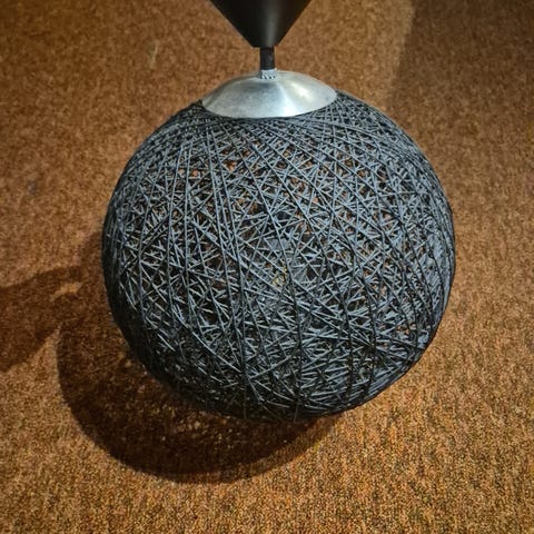Trådlampe selges. Pent brukt, men litt farge som har gått av her og der, men synes ikke godt. Pæren som står i gir en hyggelig glød og har lav styrke.