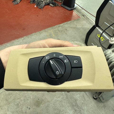 BMW kontrollpanel med knapper, brukt bilkomponent med tilkoblingskabel. Passer til relevante BMW-modeller som bruker denne typen kontrollpanel.