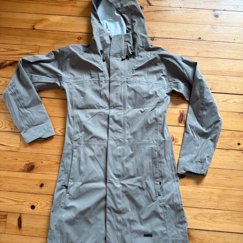 SWIMS regntøy for dame i størrelse XS, laget av polyester. Jakken er grønn og designet for utendørs bruk under våte forhold. Ingen skader. Dessverre har jeg vokst ut av den.