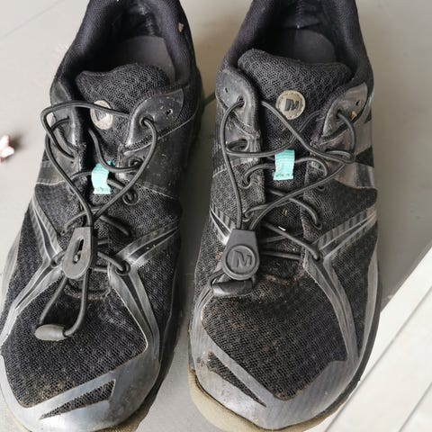 Nike Sneakers joggesko i størrelse 46. Skoene er svarte med gule detaljer og har snøring. Egnet for daglig bruk og trening.