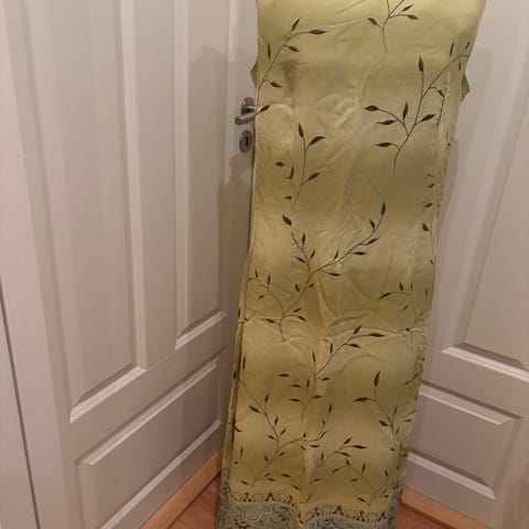 Fin kjole, brukt en gang den er litt liten i str (italiensk) veldig fint snitt og fall i stoffet