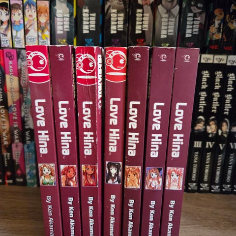 Lovehina manga bok med fargerik forside og svart-hvitt illustrasjoner innvendig. Boken inneholder japansk tegneserie med norske oversettelser. Passer for lesere som er interessert i manga og japansk kultur.