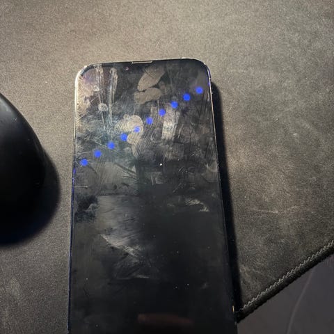 • Litt riper i skjermen og på baksiden (synlige på bilder)