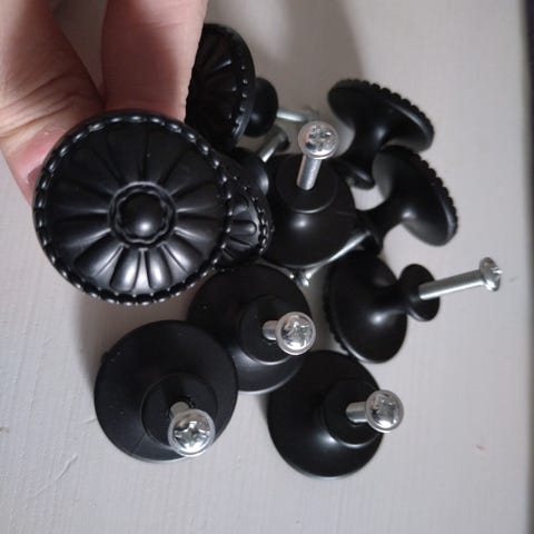 5 stk svarte møbelknotter selges samlet for 150,- (tilsvarer 30,- per stk).